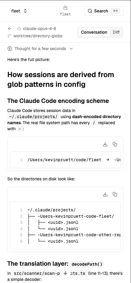 Fleet watches your configured directories for session transcript files.